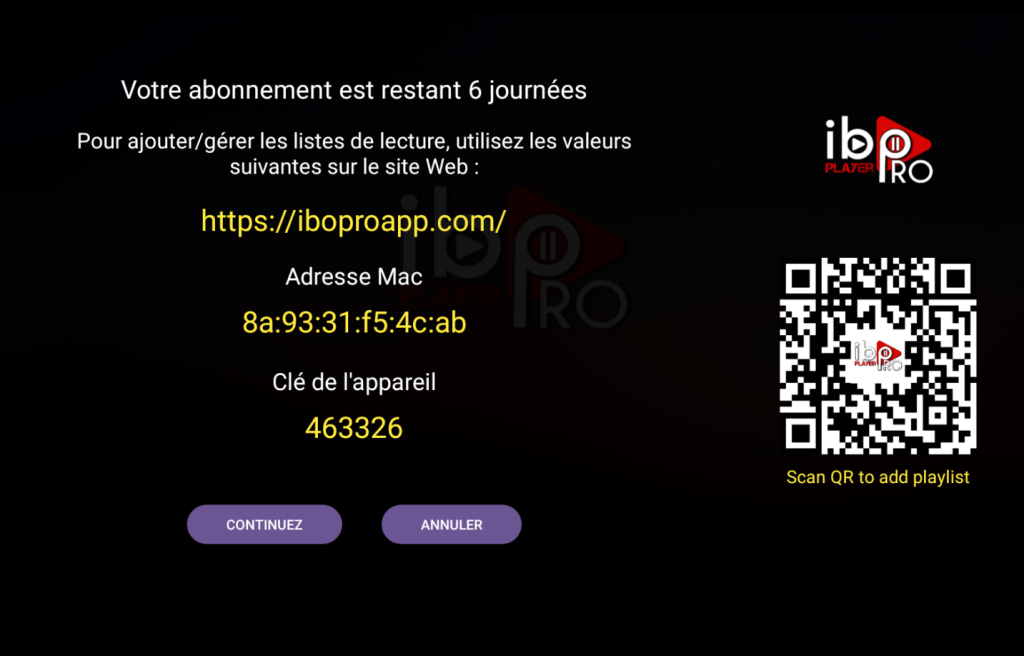 Once you install ibo pro player, send us the mac device and device key displayed on the screen via live chat or by email [email protected] so we add the subscription to your app.